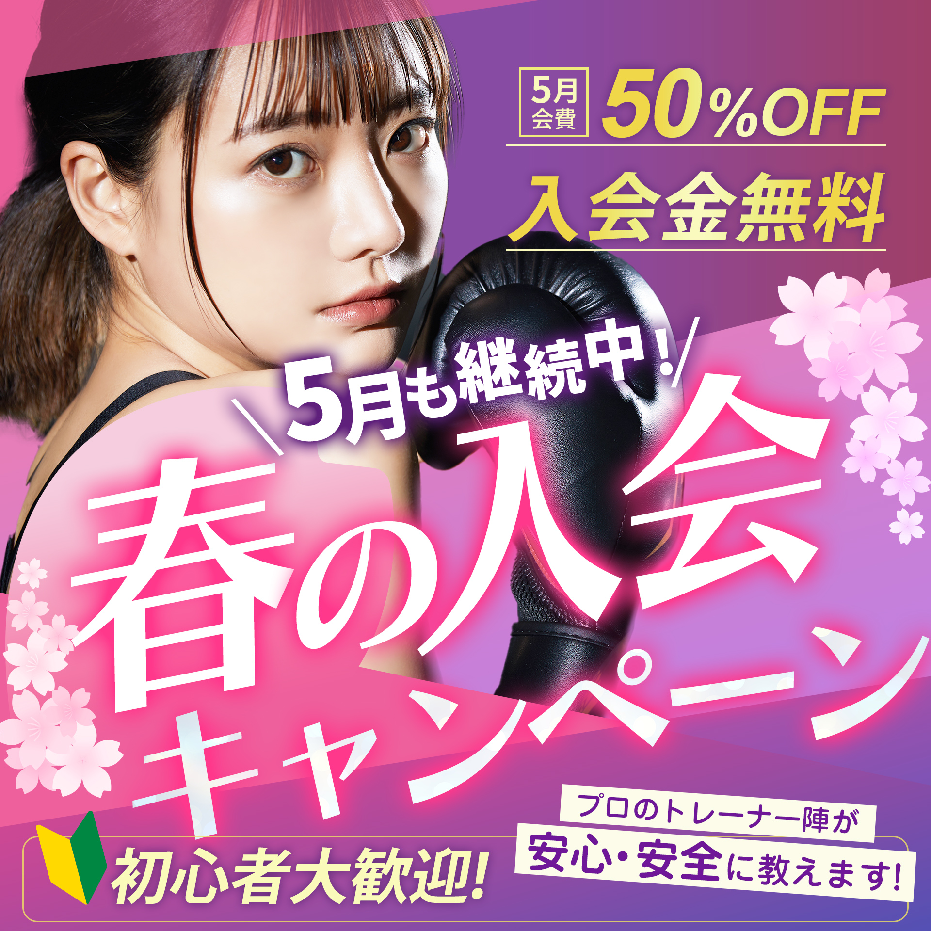 新規で女性会員獲得 / 運動不足の解消やダイエットのためボクシングに興味があるが、敷居が高く感じている初心者層 / instagram広告 / 「強さ」「美しさ」「お得な情報」を融合させ、女性の挑戦心を刺激。春=桜の素材を用いて華やかなイメージを表現 / ピンク・ 金 / 初心者でも安心して始められる環境であることを訴求し、心理的な障壁を取り除く。