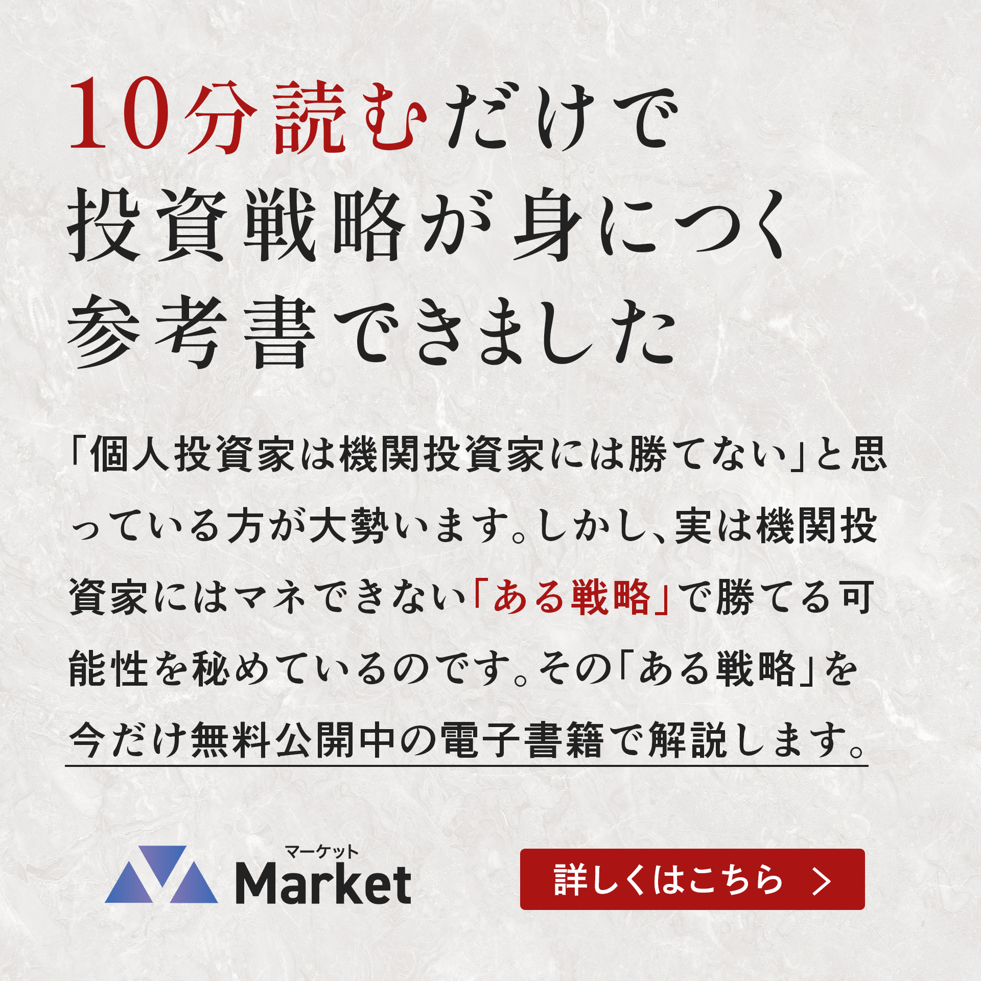 無料の電子書籍版資料へ誘導 / 効率的に学習したい投資初心者、「機関投資家には勝てない」と悩んでいる層 / Google広告 / 「多忙な人への配慮」と「プロの戦略」という二つのベネフィットを、ミニマルなデザインで強調 / ベージュ・赤 / 「10分読むだけ」という手軽さを強調し、文字情報主体で構成することで、信頼性と専門性の高さを訴求。